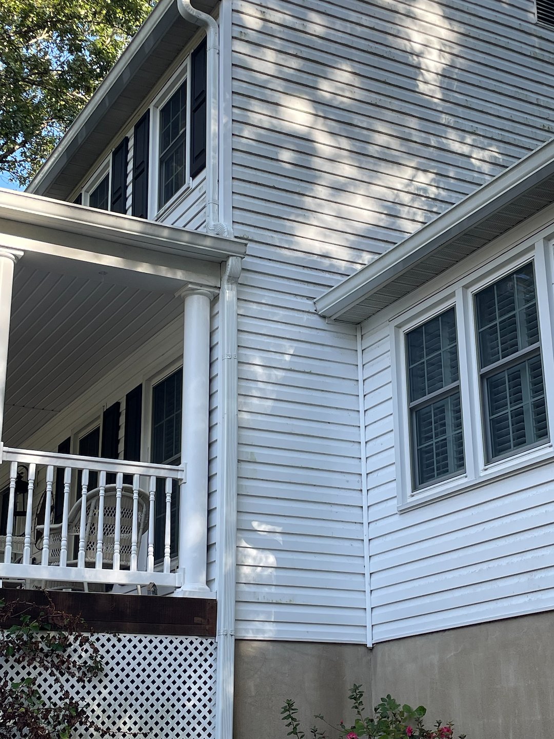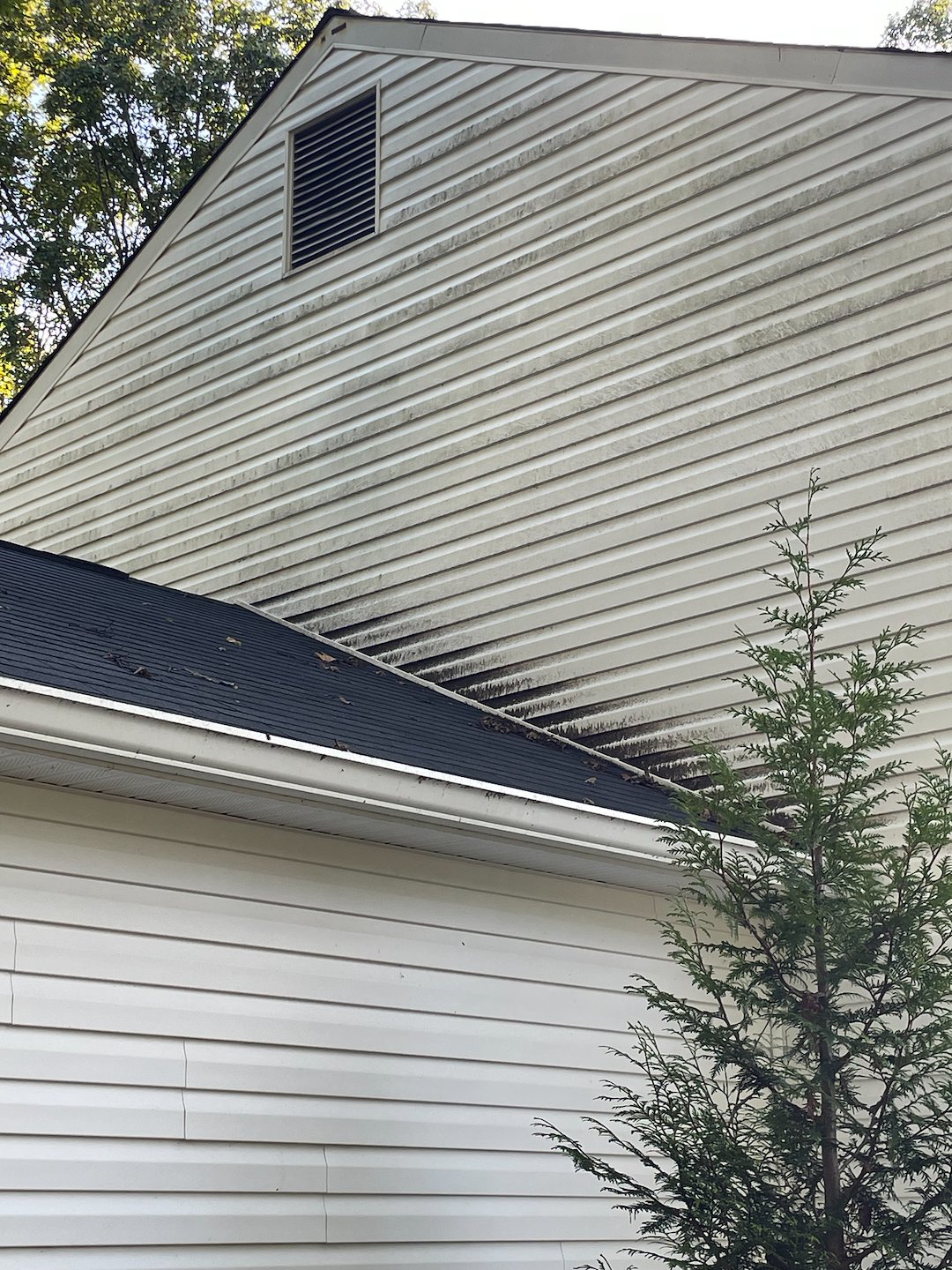 This beautiful home in the Woodstream Community of Stafford was desperately calling out for some attention! Nestled among towering trees, the property's natural surroundings had taken their toll on the exterior over time. Dense algae growth and organic matter had gradually accumulated across the siding, obscuring the home's true character and leaving it looking tired.